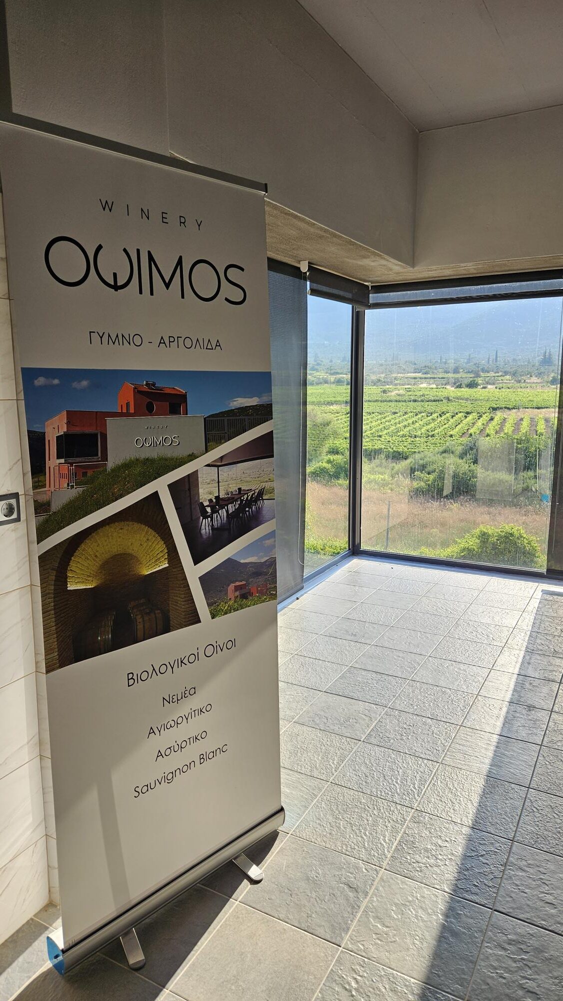 Με υποδέχτηκε ο Παναγιώτης Όψιμος, ένας εξαιρετικός οικοδεσπότης. Η επίσκεψη ξεκίνησε με μια σύντομη ξενάγηση στους χώρους παραγωγής: στις εγκαταστάσεις, στο κελάρι με τα βαρέλια και στην αίθουσα δοκιμών, η οποία προσφέρει μια υπέροχη θέα στους αμπελώνες γύρω από το οινοποιείο. Πρόκειται για ένα μικρό αλλά πολύ τακτοποιημένο οινοποιείο, με ξεκάθαρη προσήλωση στην ποιότητα του τελικού προϊόντος.