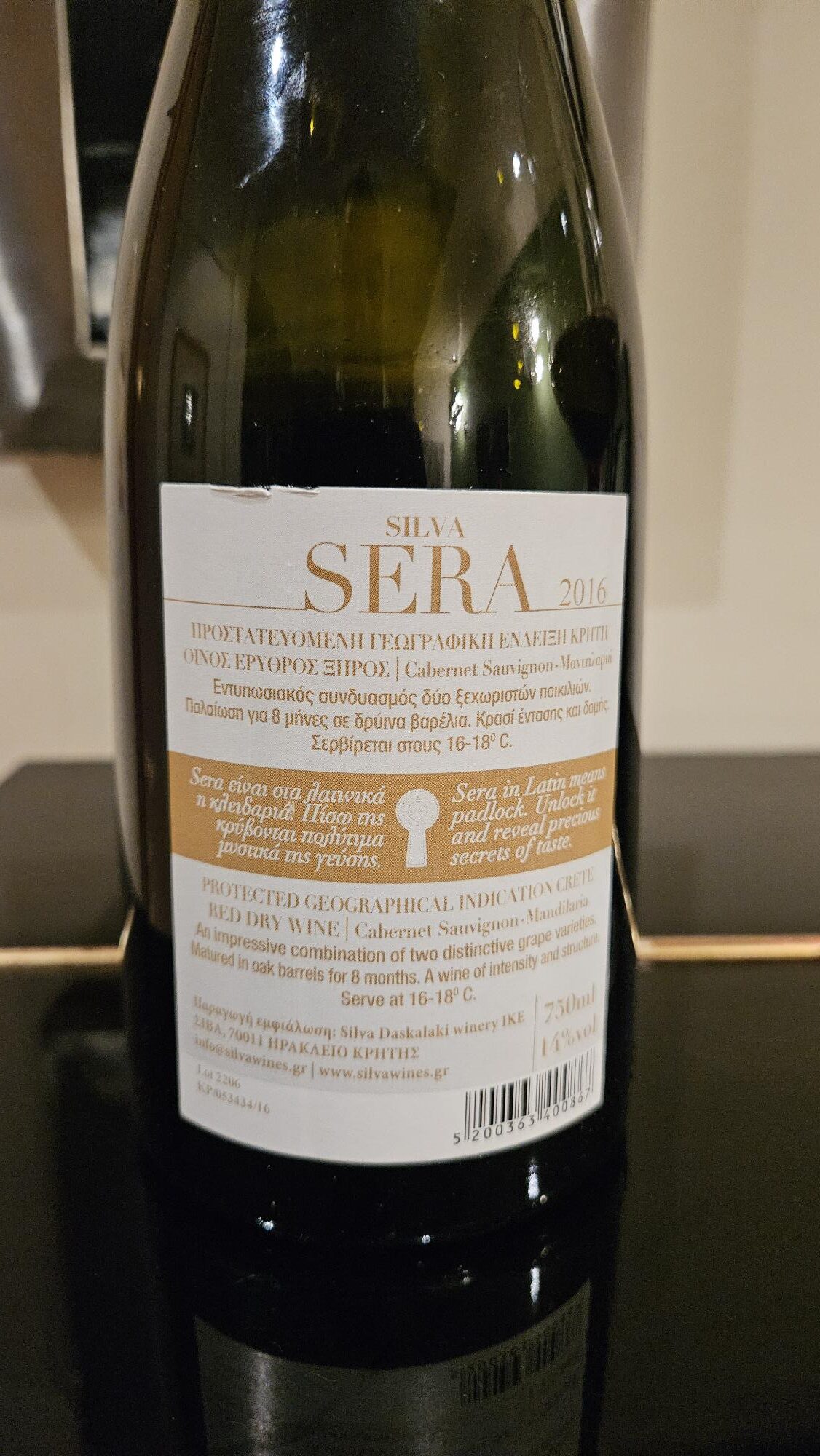 Το Sera 2016 του Οινοποιείου Silva Δασκαλάκη είναι ένα κρασί που ξεχωρίζει, για την καθαρά δική του εσωτερική ένταση μαζί με την αυθεντική καταγωγή του. Ένα καλοδουλεμένο κρασί, με στιβαρότητα αλλά και φινετσάτο χαρακτήρα που παραπέμπει ξεκάθαρα στην Κρήτη. Δώστε του λίγο χρόνο στο κελάρι…